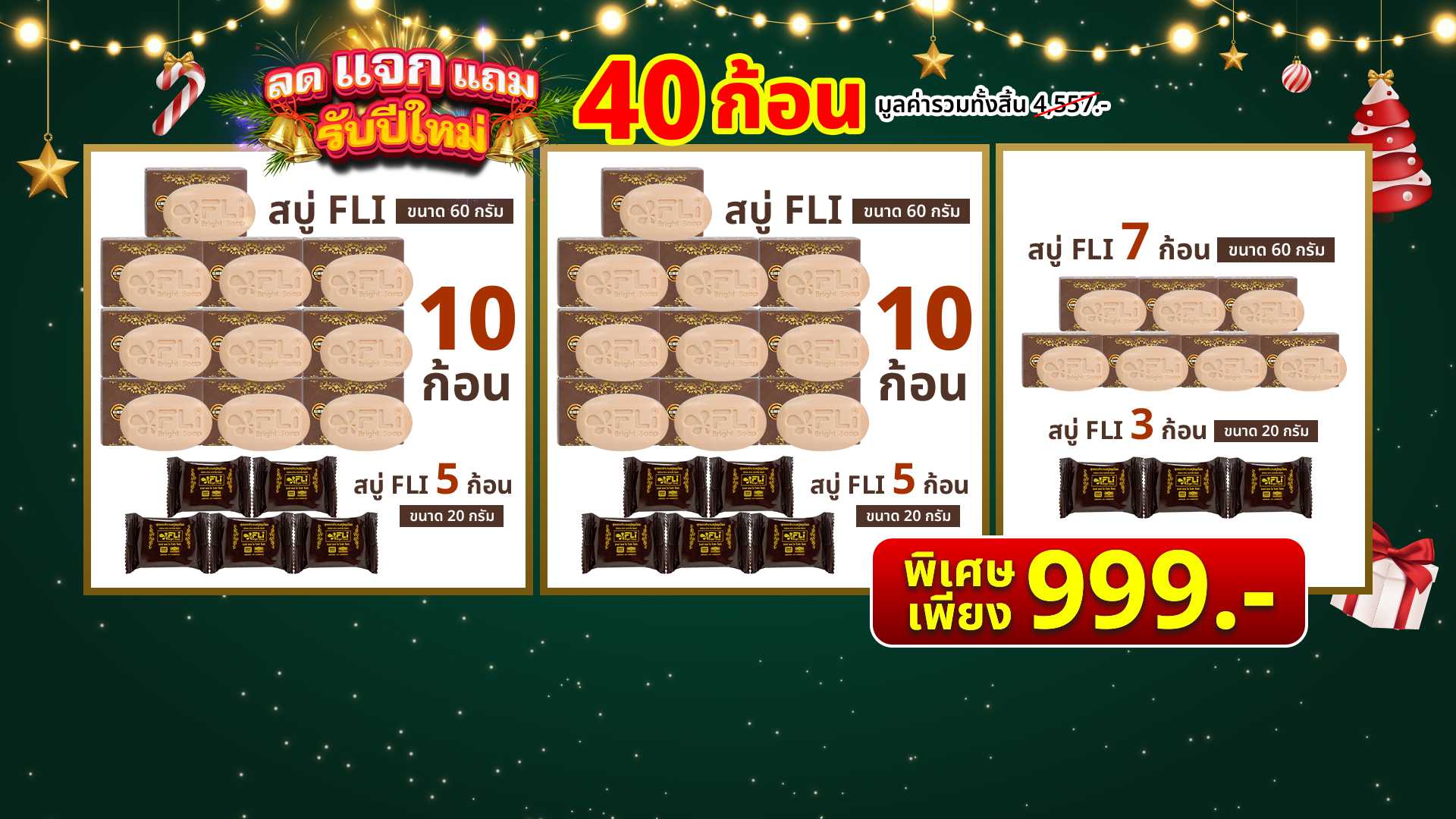 สบู่ FLi Bright Soap เอฟ แอล ไอ ไบร์ท โซป ชุดสบู่สมุนไพร 27 ก้อน แถมฟรี 13 ก้อนเล็ก